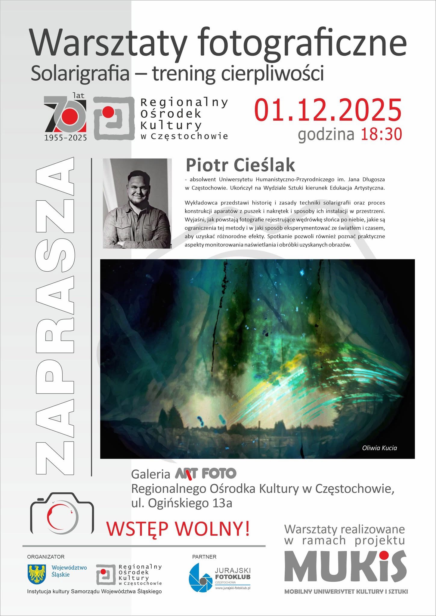 W ramach stypendium artystycznego prezydenta miasta Częstochowy doktorant Piotr Cieślak zrealizował w czerwcu warsztaty z techniki solarigrafii. Po kilku miesiącach wraz z grupą warsztatową zaprezentuje efekty pracy.