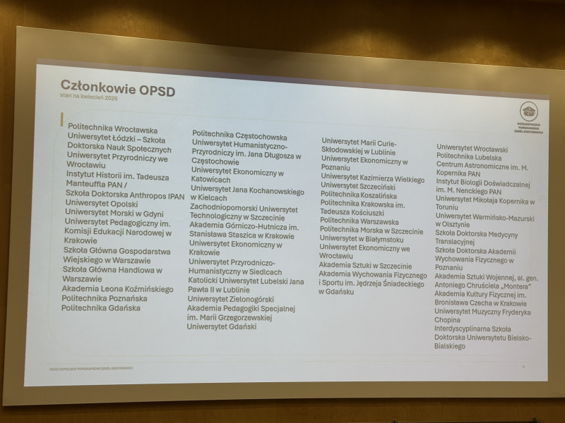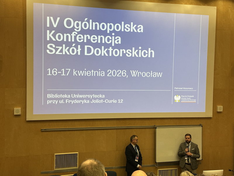 W dniach 16-17 kwietnia 2026 we Wrocławiu odbyła się IV Ogólnopolska Konferencja Szkół Doktorskich, której organizatorem było Ogólnopolskie Porozumienie Szkół Doktorskich. W tym roku gospodarzem Konferencji był Uniwersytet Wrocławski.
